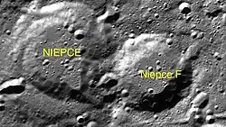 Niepce hat einen mit F bezeichneten Nebenkrater, der direkt im Osten des Kraters angrenzt:[2]
