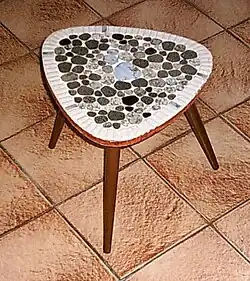 Ein Nierentisch ist ein für die 1950er Jahre typischer Tisch mit asymmetrisch geformter, (häufig gemusterter) resopalbeschichteter oder mosaikbesetzter Oberfläche und drei schräg gestellten, dünnen Tischbeinen.
