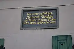 Im Sommer 1858 zog Nietzsches Mutter Franziska Nietzsche mit ihren zwei Kindern Friedrich und Elisabeth in das Haus Nr. 355, heute Weingarten 18. Sie hatte im Obergeschoss eine helle, geräumigere Wohnung angemietet. 1878 kaufte sie das Haus und blieb hier bis zu ihrem Lebensende wohnen. Nachdem sie 1897 gestorben war, wurde das Haus von ihrer Tochter verkauft.
