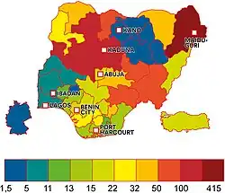 - ↑ Poverty headcount ratio at $2.15 a day (2017 PPP) (% of population) - Nigeria | Data. Abgerufen am 28. September 2022.