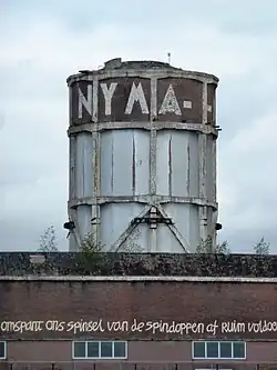 - Der NYMA-watertoren ist ein als Gemeindedenkmal geschütztes Bauwerk am Ufer der Waal. Er diente der ehemaligen Kunstseidefabrik Nyma und wurde 1929 gebaut. Am 14. November 2012 wurde er in das Verzeichnis der Gemeindedenkmäler aufgenommen und steht symbolisch für die Nijmeegse Industrie.[2]