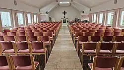 Im Erdgeschoss befinden sich Tagungs- und Gruppenräume, der Andachtsraum befindet sich im 1. Obergeschoss. Insgesamt haben rund 350 Personen Platz in dem Kirchenraum. Die Sitzreihen bestehen aus zusammenmontierten, gepolsterten Einzelsitzen in siebener Gruppen mit einem Mittelgang dazwischen.