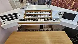 Eine zweimanualige Orgel mit 16 Registern wurde vom Orgelbauer Konrad Koch (1934–1994) aus Feuchtwangen konstruiert und im Jahr 1976 eingeweiht. Sie steht auf einer gesondert eingezogenen Plattform unter der Saaldecke. Der Kantor bediente den Spieltisch ebenfalls von hier aus. Im Rahmen einer Generalsanierung im Jahr 2022 wurde der Spieltisch frei beweglich in den Altarraum versetzt und über Netzwerk-Kabel mit dem Pfeifenwerk verbunden. Neben den bisherigen zwei Manualen wurde ein drittes Manual für ein im Spieltisch integriertes E-Piano ergänzt.