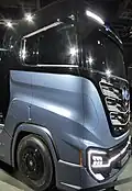 - Nikola One: Vorgestellt wurde der Nikola One am 1. Dezember 2016. Es wurde behauptet, dass es ein Elektrolastkraftwagen mit einem großen Wasserstofftank hinter der Fahrerkabine und einer Brennstoffzelle sei. Der Lastkraftwagen konnte jedoch nicht selbst angetrieben fahren[32]. Die aus der Verstromung des Wasserstoffs in der Brennstoffzelle gewonnene elektrische Energie sollte beim Fahren des Trucks die Batterie laden, und laut dem CEO der Nikola Motor Company, Trevor Milton, betrug damit die Reichweite des Trucks rund 1.930 km (ca. 1.200 Meilen). Die Batterie sollte eine Kapazität von 320 kWh haben und vier Elektromotoren versorgen, die 745 kW (1.000 PS) leisten.[33][34]