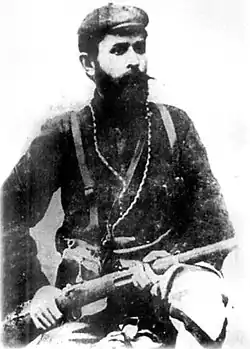 - ↑ Yet the identity problem was glaring, Karev reportedly addressed an assembly of 60 Bulgarian, Greek and Vlach inhabitants, to establish his “temporary government” but he referred to those assembled “brother Bulgarians”. The revolutionaries flew Bulgarian flags, killed five Greek Patriarchists, accused to be Ottoman spies, and subsequently attacked the local Muslims (Turks and Albanians). Michael Palairet, Macedonia: A Voyage through History (Vol. 2), Cambridge Scholars Publishing, 2016, ISBN 1443888494, S. 149.