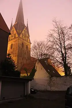 Die Nikolaikirche im 16. Jahrhundert, mit dem alten Turm -
