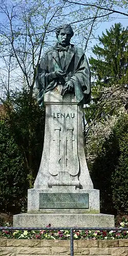 Lenau ist ein wichtiger Repräsentant des Biedermeier und ein Naturlyriker von hohem Rang (Schilflieder, Waldlieder). Zur deutschen Literatur trägt Lenau einen einzigartigen, melancholischen Ton bei, der sich durch weite Teile seiner Dichtung zieht. Er spielte zudem Geige und Gitarre.[32]