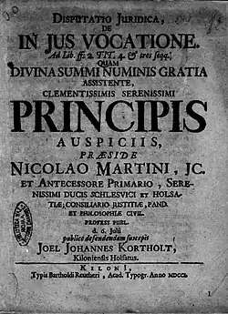 - De in ius vocatione. Barthold Reuther, Kiel 1701 (Latein, beic.it).