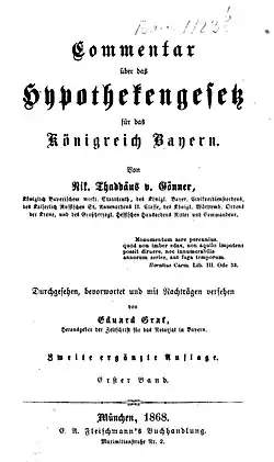 - Commentar über das Hypotheken-Gesetz für das Königreich Bayern. 2. Auflage.