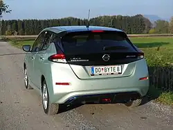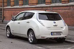 Der Nissan Leaf (englisch für Blatt; LEAF auch als Backronym Leading Environmentally-friendly Affordable Family car interpretiert) ist ein Elektroauto des japanischen Automobilherstellers Nissan, das im August 2009 in Yokohama der Öffentlichkeit vorgestellt wurde und seit Dezember 2010 verkauft wird. Der Leaf ist das erste Großserien-Elektroauto, das von Anfang an für diesen Antrieb konzipiert wurde.[1] Er war zeitweise in 51 Ländern erhältlich und wurde bis September 2021 519.000 mal gebaut[2][3][4][5], im Juli 2023 wurde die Marke von 650.000 überschritten[6]. Der Leaf war bis Ende 2019 das weltweit meistverkaufte Elektrofahrzeug und wurde vom Tesla Model 3 abgelöst.[7] Das Fahrzeug wird in Japan und den USA produziert und wurde zwischen 2015 und 2018 als Venucia e30 in China hergestellt und vermarktet. Für den europäischen Markt endete die Produktion in Großbritannien im März 2024.[8]