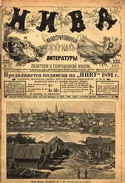 Niwa (russisch Нива, wiss. Transliteration Niva «Ни́ва», dt.: „Getreidefeld“) war eine russische wöchentliche Literaturzeitschrift (Journal) mit Beilagen. Sie erschien 48 Jahre lang, vom 18. (30.) Dezember 1869 18. Dezemberjul. / 30. Dezember 1869greg. bis zum 28. September 1918, im Verlag von Adolf Marcks in Sankt Petersburg.[1] Die Zeitschrift positionierte sich als familienfreundliches Magazin und richtete sich an eine breite Leserschaft. Die Publikation umfasste literarische Werke, historische, populärwissenschaftliche sowie verschiedene Jubiläumsaufsätze, Reproduktionen und Kupferstiche von Gemälden zeitgenössischer Künstler. Materialien politischen und sozialen Inhalts wurden in „wohlmeinendem“ Ton wiedergegeben und mit zahlreichen Abbildungen versehen – bis zum Beginn des 20. Jahrhunderts wurden meist Kupferstiche abgebildet, später fotografische Rezensionen.