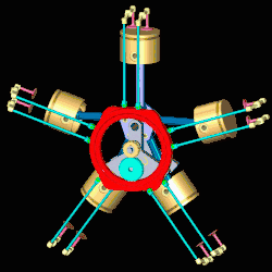 Beim Motor BMW 132 mit neun Zylindern und entgegengesetzt drehender Nockentrommel beträgt die Untersetzung nach der obigen Formel ebenfalls 1:8 und die Zahl der Nocken auch nur je vier.