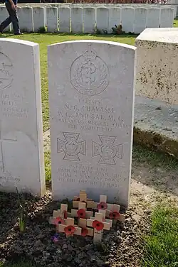 In der Schlacht von Guillemont wurde Noel Chavasse von Granatsplittern getroffen, während er ohne Rücksicht auf sich selbst Verwundete aus der vordersten Front rettete und den deutschen Stellungen dabei bis auf 25 Meter nahekam. Für sein Verhalten erhielt er das Victoria-Kreuz, die höchste britische Tapferkeitsauszeichnung.