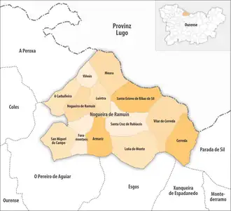 Die Gemeinde Nogueira de Ramuín ist in 13 Parroquias gegliedert:
