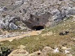 Der Eingang der idäischen Grotte liegt auf 1538 Metern Höhe. Für den Aufstieg sind unter antiken Verhältnissen etwa zwölf bis dreizehn Stunden zu veranschlagen.[3] Da die drei Wanderer betagt sind, legen sie öfters Ruhepausen ein, wozu auch die drückende Hitze Anlass gibt.[4] Unterwegs erörtern sie das große Thema der optimalen Gesetzgebung und konzipieren ihren Verfassungsentwurf. Am Ende der Diskussion ist die Grotte noch nicht erreicht.