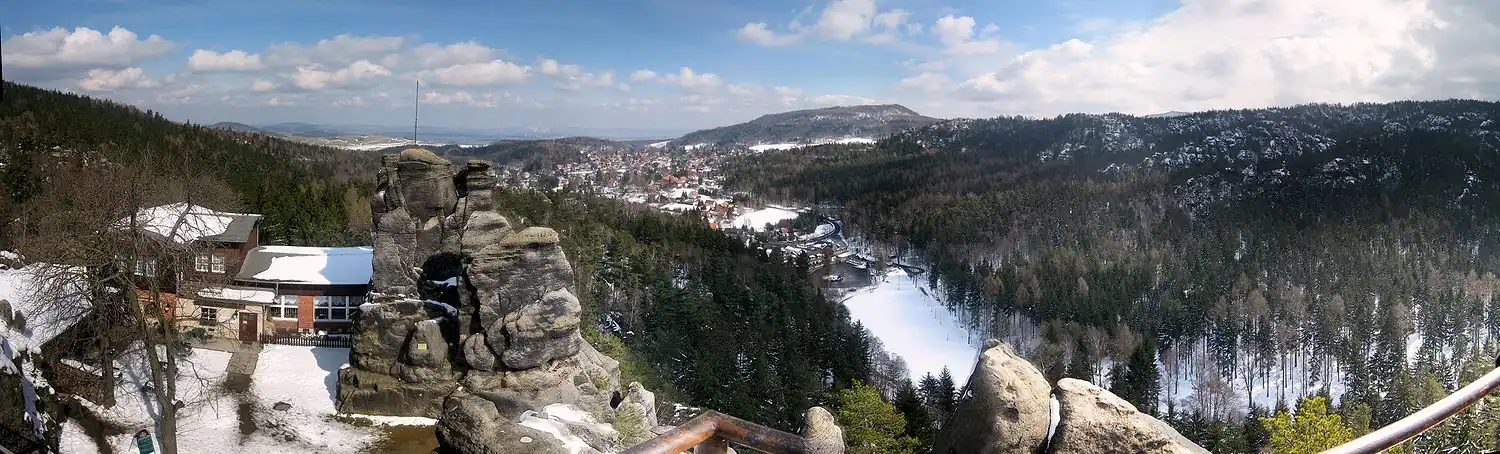 Von Waltersdorf aus gelangt man vom alten Zollhaus Wache über den Hohlsteinweg zu den Nonnenfelsen, ohne wesentliche Höhenunterschiede überwinden zu müssen.