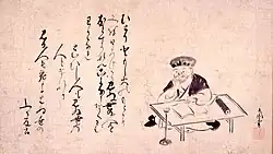 - ↑ Dies mit einem hellen und stilvollen Pinsel dargestellte Bild zu einem Text von Yoshida Kenkō (1283–1350) könnte ein Selbstporträt von Ryūho gewesen sein.