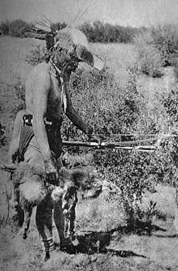 Die Religionen der zentralen Grasebene waren alle animistisch – vor allem Tiere (insbesondere Büffel, Adler und Pferd) galten als beseelt und unterschiedlich mächtig. Sie spielten bei der individuellen Visionssuche eine wesentliche Rolle als Schutzgeister. Vielfach gab es heilige Gegenstände wie etwa die Friedenspfeife. In den meisten Religionen existierte zudem die Vorstellung einer alles durchdringenden, magischen Lebenskraft [vergleiche: Manitu (Algonkin), Wakȟáŋ (Sioux), Maxpe (Absarokee), diyi´ (Apachen)], die bei den Algonkin- und Siouxvölkern darüber hinaus auch pantheistisch als allumfassend-göttlich großes Geheimnis verehrt wurde.[26] Da die Besiedelung der Plains erst durch die Übernahme des Pferdes erfolgte, waren diese Religionen relativ junge synkretistische „Mischprodukte“ aus Elementen von Jäger- und Bauernkulturen. Zudem sind auch schon sehr früh geringfügige Einflüsse des Christentums erkennbar.[9] Alle Stämme hatten heilige Männer, denen übernatürliche Kräfte nachgesagt wurden. Sie fungierten vor allem bei schwereren Erkrankungen als Heiler, aber auch als Berater der Stammesältesten. Diese religiösen Experten verfügten über besonders mächtige Geisterverbündete und genossen daher ein hohes Ansehen. Sie praktizierten außerdem Jagdmagie und spürten Feinde oder verlorene Dinge auf. Individuelle und kollektive Zeremonien waren in den Plains hoch entwickelt und reichten von einfachen Handlungen (wie etwa der Schwitzhüttenzeremonie) bis zu wochenlangen Veranstaltungen. Tabus und der Gebrauch von Tabak spielten bei all diesen Riten eine wichtige Rolle. Am wichtigsten war allgemein der Sonnentanz im Sommer, der oft mit freiwilligen Martern verbunden war und der heute bei vielen traditionellen Menschen verschiedener Stämme wieder eine wichtige Rolle spielt.[17][27] Neben verschiedenen Geheimbünden der Männer gab es auch Frauengesellschaften, die eine wichtige Rolle als Bewahrerinnen des Wissens, für die Durchführung von Fruchtbarkeitsritualen und beim (spirituellen) Anlocken der Büffel spielten.[5]
