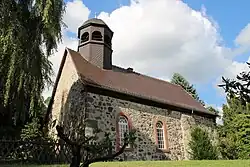 Der rechteckige Grundriss des 12. Jahrhunderts ist aufgeteilt in ein Viereck für Chor und eins für den Gemeinderaum, der nur unwesentlich größer als der Chor ist. Die Größe des Altar- und Priesterraums weist auf die Bedeutung des östlichen Teils.[4] Ein Satteldach, dem im Westen ein achtseitiger, verschieferter Dachreiter aufgesetzt ist, schließt die Kapelle ab. Über dem achtseitigen Schaft erhebt sich das Glockengeschoss mit acht rundbogigen Schalllöchern, das von einer welschen Haube bekrönt wird. Der Dachreiter beherbergt ein Zweiergeläut aus Bronze. Eine Glocke von 1955 wurde als Ersatz für eine 1942 beschlagnahmte Glocke gegossen. Die andere aus dem 14. Jahrhundert trägt die Inschrift MARIA im Kordelstreifen am Hals und zeigt ein Kruzifix zwischen Maria und Johannes.[8]