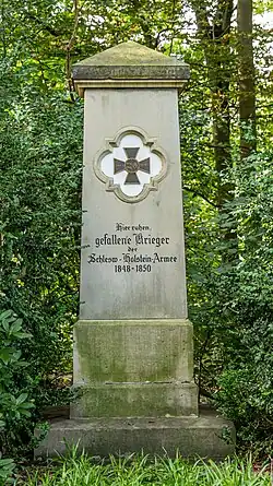 Das „Eiserne Kreuz“, ein Obelisk, Grabmal für gefallene Soldaten der schleswig-holsteinischen Armee im Schleswig-Holsteinischen Krieg (1848–1851), stand zuerst auf dem St.-Jürgen-Friedhof. Es befindet sich nach dessen Auflösung seit 1955 auf dem Nordfriedhof.[1][2]