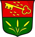 Im unteren Teil des Wappens sind drei Ähren in Gold als Zeichen einer ausgeprägten Landwirtschaft abgebildet.