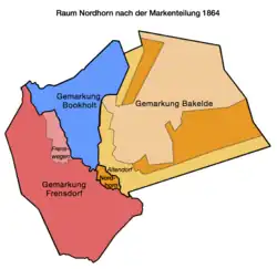 1864 wurde die gemeinsame Bakelder Mark zwischen den Gemeinden Altendorf, Bakelde und Nordhorn geteilt. Da jeder Gemeinde bestimmte Anteile an Heide-, Moor- und Ackerland zustanden, entstanden keine zusammenhängenden Gemeindegebiete.