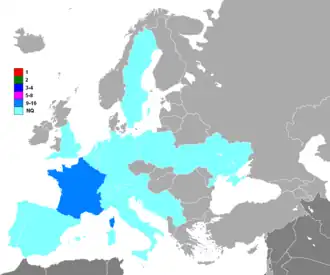 | 1984 | Frankreich | nicht qualifiziert | in der Qualifikation aufgrund der schlechteren Tordifferenz an Titelverteidiger Deutschland gescheitert | |||