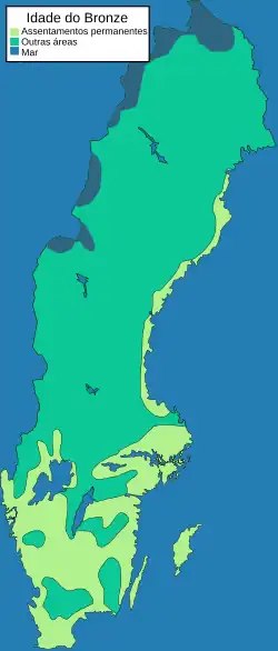 In weiten Teilen Skandinaviens gab es keine Kupfer- und Zinnvorkommen und Kupferlagerstätten in Schweden wurden erst sehr viel später abgebaut. Die Vorstellung jedoch, dass die menschlichen Gruppen in Skandinavien relativ spät Bronze kennenlernen[1] ist nicht richtig. Zwar wird die vorangegangene Epoche Spätneolithikum (späte Jungsteinzeit) genannt, während in südlich angrenzenden Gebieten bereits von der Frühbronzezeit gesprochen wird. Allerdings sind die Begriffe aus der Forschungsgeschichte heraus gewachsen. Tatsächlich wurden bereits ab etwa 2100 v. Chr. Artefakte aus Zinnbronze eingeführt (Kupfer über Mitteldeutschland v. a. aus der Slowakei, Zinn von den britischen Inseln) und lokal zu eigenständigen Formen geschmolzen.[2]