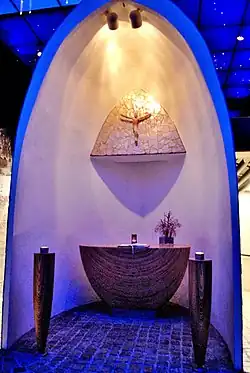 Die Halle umfasst (im Jahr 2025) vier Etagen, die sich zum Teil, um das Landschaftsbild nicht zu beeinträchtigen, unterhalb der Erdoberfläche befinden. Im Objekt befinden sich ein Informationszentrum, Restaurants, Geschäfte und ein Postamt. Von der Halle aus führt ein unterirdisch angelegter Tunnel in nordöstlicher Richtung bis zum Rand des Nordkapplateaus. Dort endet der Tunnel in einer künstlich angelegten Halle, der Grotte. Hier befindet sich ein Panoramafenster mit vorgelagerter Terrasse, von der aus ein Blick in nördlicher Richtung über das Meer möglich ist. Am Beginn des Tunnels befindet sich ein Kinosaal, in dem mehrmals täglich ein Film über das Nordkap in verschiedenen Sprachen dargeboten wird. In Grotten an der Tunnelseite sind im Modell historische Szenen mit Bezug zum Nordkap dargestellt. Im Einzelnen handelt es sich um die Fahrt Richard Chancellors von 1553, den Besuch Francesco Negris 1664, den Besuch Louis-Philippe I. und des Grafen Gustave de Montjoie von 1795, den Besuch des Königs Oskar II. 1873 und des Königs von Siam Chulalongkorn im Jahr 1907.[3] Initiator dieser dreidimensionalen historischen Grotten ist Kjersti Skavhaug.[4] Auf der Ostseite des Tunnels befindet sich die ökumenische Kapelle Sankt Johannes, auf der Westseite ist das thailändische, an den Besuch des Königs Chulalongkorn erinnernde Museum eingerichtet.