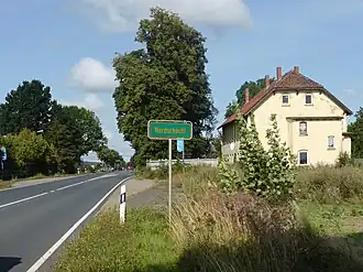 ![]() Bundesstraße 1 mit Ortseingang von Nordschacht
