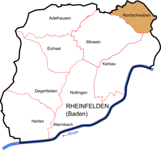 Das kirchlich zunächst zur Pfarrei Höllstein gehörige Nordschwaben wurde im Spätmittelalter der Pfarrei in Minseln zugeordnet. Im Jahr 1807 wurde der Ort dem badischen Bezirksamt Beuggen zugeteilt, 1809 dem Bezirksamt Schopfheim und 1936 zum Bezirksamt/Landkreis Säckingen. Zum 1. Januar 1974 wurde die selbständige Gemeinde in die Stadt Rheinfelden (Baden) eingegliedert.[8]