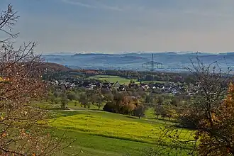 ![]() Nordschwaben von der Hohen Flum aus, im Hintergrund erkennt man die Schweizer Alpen