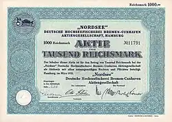 - ↑ a b c d e Klaus-Peter Kiedel: „Nordsee“ Deutsche Hochseefischerei GmbH. In: Lars U. Scholl (Hrsg.): Bremerhaven – ein hafengeschichtlicher Führer. Deutsches Schiffahrtsmuseum / Ditzen, Bremerhaven 1980, S. 102–105.