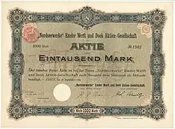 - Aktie von 1903 der „Nordseewerke“ Emder Werft und Dock Aktien-Gesellschaft
