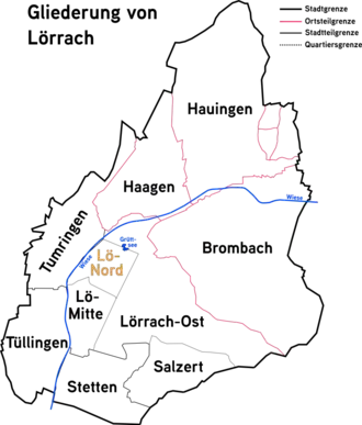 - ↑ Badische Zeitung: Der Lörracher Gemeinderat steht hinter dem Nordstadt-Projekt, Artikel vom 6. Februar 2023, aufgerufen am 8. Februar 2023.