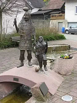 - Im Ort stehen einige schöne Fachwerkhäuser oft noch mit Wappen und Jahreszahlen aus der Zeit der Zugehörigkeit zum Kloster Alpirsbach. So findet man auch entlang der Ortsgrenze sehr schöne Grenz- und Marksteine mit württembergischen Wappen und Abtswappen des Klosters Alpirsbach.