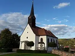 - Die heutige katholische Kirche ist wie ihre Vorgängerkapellen der hl. Barbara geweiht. Die 1760 erbaute barocke Kirche, birgt an der Chorwand einen eingelassenen Sandsteinquader, mit der ältesten Jahreszahl 1481 im Ort. 1878/79 wurde der barocke Dachreiter abgebrochen und ein schlanker Fassadenturm errichtet. In den zwanziger Jahren wurde das Langhaus verbreitert.
