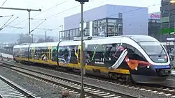 Weser-Ems (WE): Seit dem 5. November 2000 betreibt die NordWestBahn im Auftrag der Landesnahverkehrsgesellschaft Niedersachsen (LNVG) das Weser-Ems-Netz in Niedersachsen. 2014 wurde der Vertrag bis 2026 erneut an die NordWestBahn vergeben.[9] Mit der Vertragsverlängerung führte die Nordwestbahn zahlreiche Veränderungen im Netz ein: Über 60 neue Fahrkartenautomaten wurden aufgestellt, zusätzliche Kundencenter wurden eröffnet, alle Triebzüge erhielten eine Grundsanierung, sechs neue Triebzüge werden eingesetzt und ein Alkoholkonsumverbot im Zug wurde eingeführt.[10] Im Juni 2025 erteilte die LNVG den Zuschlag für den Verkehrsvertrag von 2026 bis 2035 wieder an die NordWestBahn. Es besteht die Option, den Vertrag um zwei Jahre zu verlängern.[11]