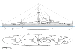 - ↑ a b Siegfried Breyer: Schlachtschiffe und Schlachtkreuzer 1905 - 1992 Band 1 Von der Dreadnought bis zum Washington-Vertrag. Podzun-Pallas-Verlag GmbH, Friedberg 1992, ISBN 3-7909-0465-1, S. 98.