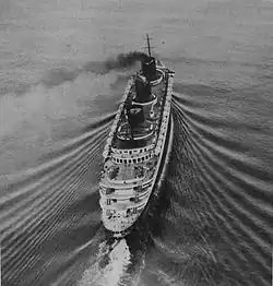 Eine Besonderheit war ihr turboelektrischer Antrieb mit einer Wellenleistung von 165.000 PS (121.000 kW): Die Kraft der Antriebsmaschine wurde nicht von einer mechanischen Welle auf die Schraube übertragen, sondern elektrisch. Jede der vier Schrauben wurde von einem Elektromotor angetrieben, der seine Energie von je einem eigenen Turbosatz aus Dampfturbine und Turbogenerator erhielt. Die Reduzierung der hohen Turbinendrehzahl auf nur drei Schiffschraubenumdrehungen pro Sekunde war somit ohne ein aufwändiges Getriebe möglich. Ein weiterer Vorteil lag darin, jederzeit auf vollen Rückwärtsschub umstellen zu können. Wegen spürbarer Vibrationen wurden nach der ersten Saison die dreiflügeligen Propeller gegen solche mit vier Flügeln gewechselt, die sich bewährten.