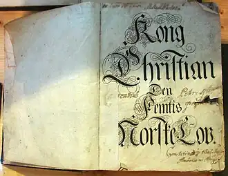 König Christian V. ging am Ende des Jahrhunderts einen Schritt weiter und glich auch inhaltlich das norwegische an das dänische Recht an. Die dänischen Statthalter von Norwegen, Hannibal Sehested und sein Nachfolger, Ulrik Fredrik Gyldenløve, befürworteten die Rechtsangleichung. Doch erst 1680 setzte der König eine Kommission ein, um ein neues Gesetzbuch vorzubereiten. Sie wurde 1682 durch eine zweite Kommission aus vier norwegischen Juristen ersetzt, die alle Mitglieder der ersten Kommission gewesen waren. Sie hatten den Auftrag, den Entwurf des Danske Lov – es trat 1683 in Kraft und richtete sich nach deutschen Vorbildern – daraufhin zu überprüfen, inwieweit es auch in Norwegen anwendbar sei. Wo dies nicht möglich war, sollte die Kommission sicherstellen, dass die Abweichungen dem norwegischen Rechtsbrauch entsprachen. Der von der Kommission ausgearbeitete Vorschlag wich der königlichen Verwaltung in Kopenhagen dann doch zu weit vom Danske Lov ab und sie revidierte die Vorlage in einer Reihe von Punkten in ihrem Sinn. Der abschließende Text wurde am 15. April 1687 unterzeichnet und das neue Recht trat zum Michaelistag des Folgejahres, dem 29. September 1688, in Kraft.[1]