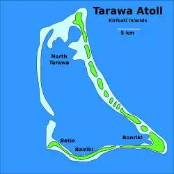 North Tarawa, auch Tarawa Ieta (Nord-Tarawa; früher Cook Island), in der Republik Kiribati, ist die nordöstliche gerade Inselkette, die zusammen mit South Tarawa das Atoll Tarawa bildet. North Tarawa ist ein eigenständiger Verwaltungsdistrikt, der durch das Eutan Tarawa Council (ETC) mit Sitz in Abaokoro gelenkt wird. Die Bevölkerung beträgt 7018 Einwohner (Stand 2020)[1], die sich auf 14 Siedlungen verteilen; die Bevölkerungsdichte beträgt 460 Einwohner je km².