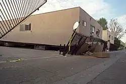 Das Northridge-Erdbeben ereignete sich am 17. Januar 1994 um 04:30 Uhr Ortszeit (12:30 UTC) in Reseda in der Stadt Los Angeles. Das Erdbeben hatte eine hohe Magnitude von 6,7 Mw und erreichte auf der Mercalliskala die Stufe IX (verwüstend). Der Spitzenwert der Oberflächenbeschleunigung (Peak ground acceleration) war der höchste jemals in einer städtischen Umgebung gemessene Wert in Nordamerika.[1] 60 Menschen starben und mehr als 9.000 wurden verletzt. Der Sachschaden wurde auf 20 Milliarden Dollar geschätzt, es war damit eine der teuersten Naturkatastrophen in den USA.[2] Das Beben betraf fast die gleiche Region wie das San-Fernando-Erdbeben von 1971 (Sylmar-Erdbeben), das eine Stärke von 6,6 MW erreichte.