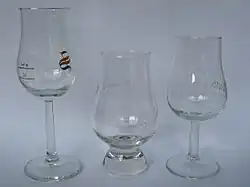 Von der Form her sind Nosing-Gläser mit einer Sherrytulpe vergleichbar, aber häufig bauchiger geformt. Dadurch kann sich das Aroma im Bauch ausbreiten und wird durch die sich nach oben verjüngende Form konzentriert der Nase zugeführt. Die Flüssigkeit kann im Glas leicht geschwenkt werden, um die Entfaltung der Aromen zu fördern, allerdings entweicht dadurch auch mehr Alkohol und überdeckt feinere Nuancen. Das dünne, farblose Glas erleichtert die farbliche Einordnung und die Bewertung der Viskosität der Spirituose.