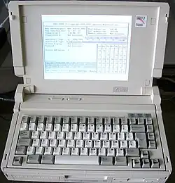 Einer der ersten als Laptop zu bezeichnenden Computer ist der GRiD Compass 1100, der vom britischen Industriedesigner Bill Moggridge 1979 entworfen, aber erst 1982 erstmals verkauft wurde.[12] Dieser Laptop verfügte zwar über seinerzeit beachtliche 340 kB Hauptspeicher, hatte aber aufgrund der fehlenden IBM-Kompatibilität keinen kommerziellen Erfolg.