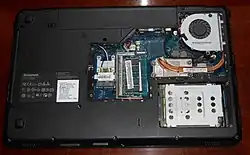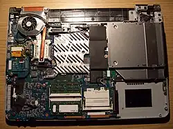 Die Komponenten eines tragbaren Computers sind für den mobilen Einsatz optimiert. Die grundlegenden Komponenten von Laptops funktionieren identisch mit denen ihrer Desktop-Pendants. Die konstruktionsbedingten Beschränkungen in Bezug auf Leistung, Größe und Kühlung von Laptops begrenzen jedoch die maximale Leistung von Laptop-Komponenten im Vergleich zu Desktop-Komponenten, obwohl sich dieser Unterschied zunehmend verringert hat.[19]