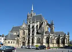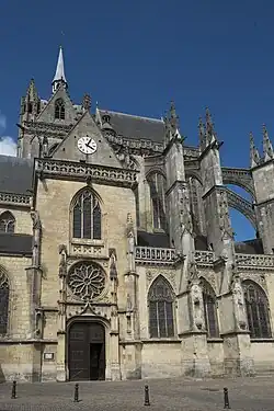 Die Architektur der Kirche ist vom Baustil der Gotik geprägt. Während der Dekor des Langhauses und des Westportals ebenfalls gotisch sind, weist der Chor mit seinem dreigliedrigen Aufriss und seinem mächtigen Strebewerk einen reichen Renaissance-Dekor auf.