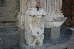 1860 entdeckte man unter der Gipsschicht des 14. Jahrhunderts, auf der sich das während der Religionskriege zerstörte Fresko befand, das romanische Tympanon aus rosa Marmor. Christus, der seine rechte Hand zum Segen erhoben hat und in der linken Hand ein Buch hält, ist umgeben von den Symbolen der Evangelisten, dem geflügelten Menschen, dem Löwen, dem Adler und dem Stier. Zu seinem Haupt schweben zwei Engel, einer mit Weihrauchfass, der andere mit einer Posaune. Auf der Bogenrundung sind die Reste einer Inschrift erhalten, die sich auf die Verehrung der Heiligen Drei Könige bezieht.