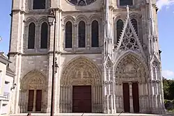 Während der Französischen Revolution wurde die Stiftskirche verwüstet. Insbesondere wurden 1794 zahlreiche Statuen an der Fassade verstümmelt. Einige dieser Skulpturen wurden von Alphonse Durand in den Grundmauern des ehemaligen Ursulinenklosters wiedergefunden. Sie sind heute zum Teil im Museum des Hôtel-Dieu der Stadt ausgestellt, während der andere Teil im Lapidarium auf den Emporen aufbewahrt wird.
