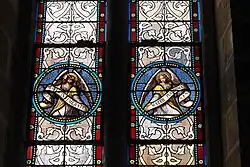 Auf den drei großen Fenstern des nördlichen Querhauses sind die heilige Anna, der heilige Josef und der heilige Franz von Sales dargestellt. Auf den kleinen unteren Scheiben sieht man die Unterweisung Mariens, die Heilige Familie und Franz von Sales, der einer Frau Almosen gibt. Die Fenster des südlichen Querhauses stellen die beiden Ordensgründer dar, Alix Le Clerc und Pierre Fourier, sowie die heilige Philomena, den heiligen Augustinus und seine Mutter, die heilige Monika, den Apostel Petrus und die heilige Euphrasia von Konstantinopel.